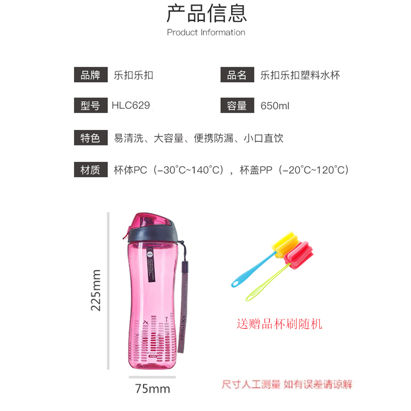 650ml弹扣防尘便携塑料水杯 买就送杯刷【塑料/颜色自选】 |