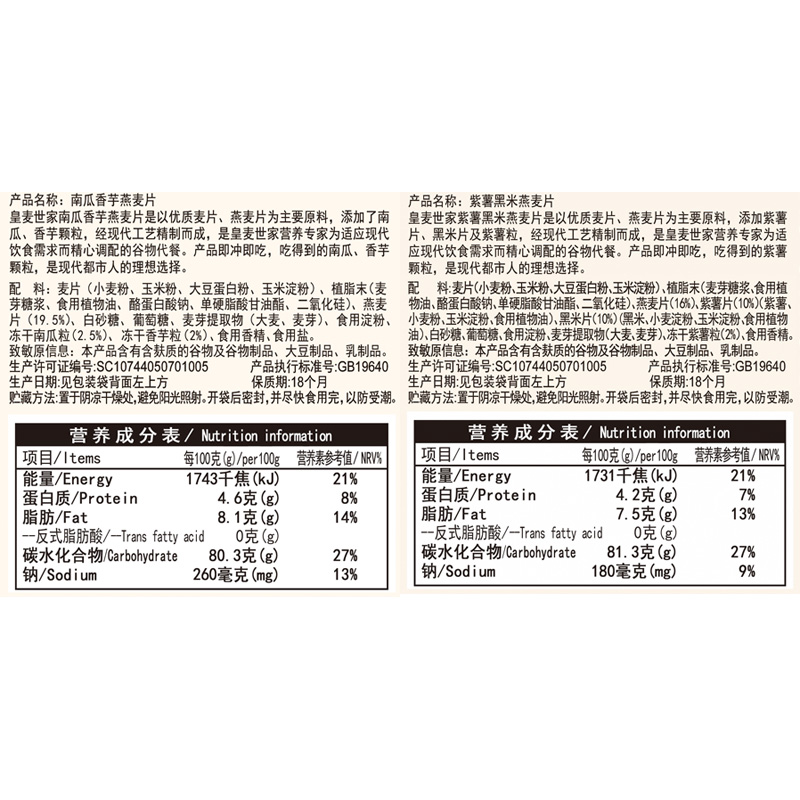 紫薯黑米&南瓜香芋燕麦片组合装 |