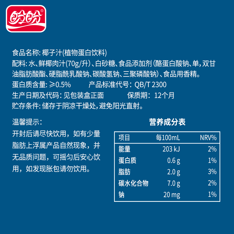 盼盼生榨椰子汁 |