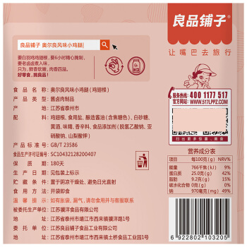 良品铺子 奥尔良小鸡腿休闲零食卤味鸡肉熟食网红小吃肉干肉脯108g |