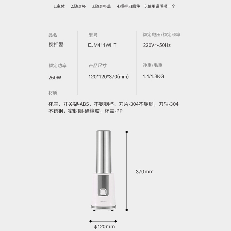 430ml按压家用便携式搅拌机随身奶昔果汁杯电动榨汁机【不锈钢/白色】 |