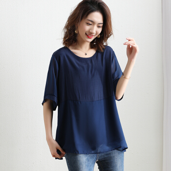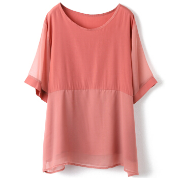 红粉宣言夏季新款宽松套头拼接雪纺衫女短袖大码女装 粉色 L |
