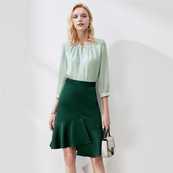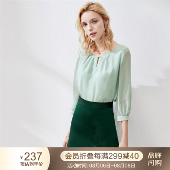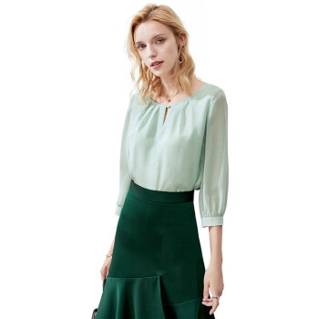 颜域薄荷绿圆领雪纺衫女新款秋装减龄宽松显瘦七分袖气质上衣 浅绿 M |