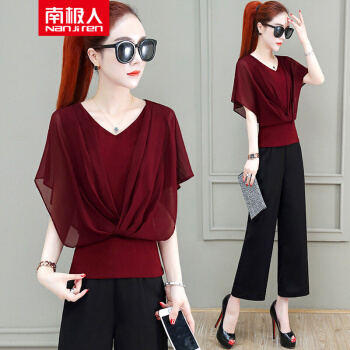南极人 短袖雪纺衫女夏季新款女装韩版时尚百搭宽松显瘦网纱上衣V领小衫 N7-GTCF03-7036-酒红色 M |