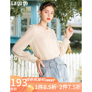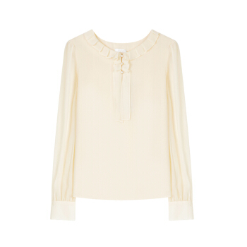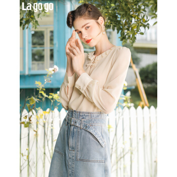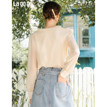 Lagogo拉谷谷秋新款圆领甜美直筒型上衣长袖木耳边泡泡袖雪纺衫女JCSS537A21 浅驼色(S3) 155/S/36 |