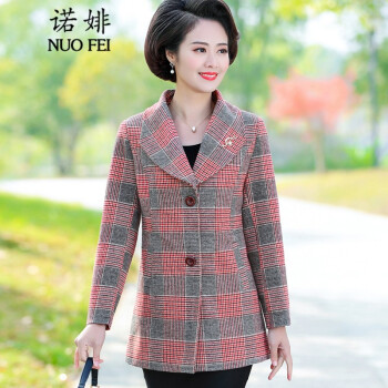 诺婔新款中年妈妈装春秋装外套洋气高贵显瘦上衣40岁60中老年女装春装气质大码休闲薄风衣短西装奶奶衣服 红格子 4XL 建议135-145斤 |
