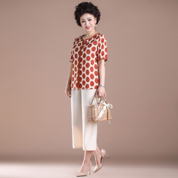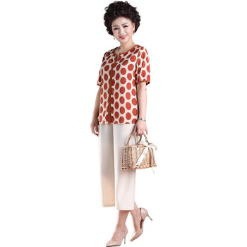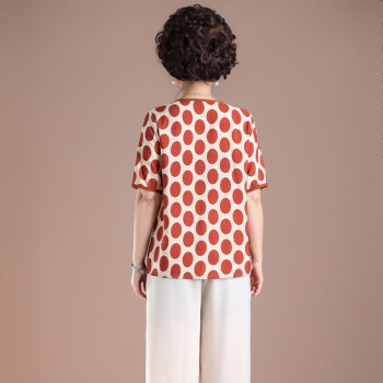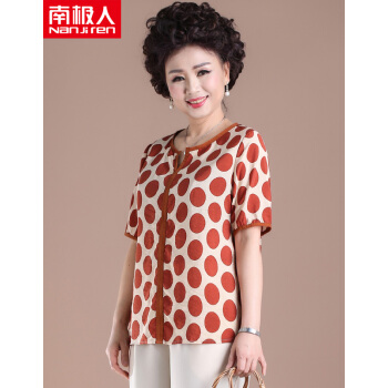 南极人 中老年女装妈妈装夏季新款中年人洋气减龄波点短袖上衣 N3-NRE411-A901-红色圆点(上衣) 2XL(建议116-126斤) |