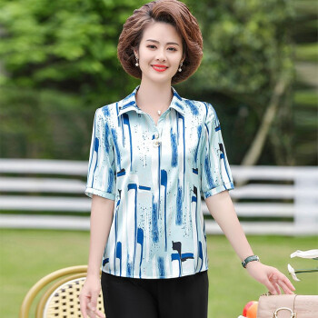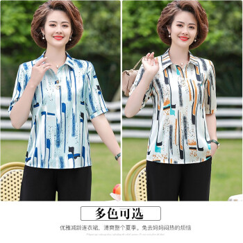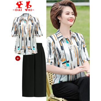黛苇中老年女装妈妈装夏装洋气套装新款女上衣雪纺衫女短袖t恤中年小衫两件套休闲套装大码女装 卡其色(阔腿裤) XL(90-110斤) |