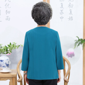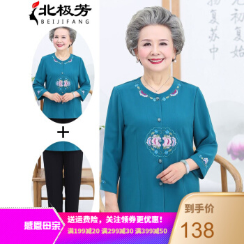 北极芳 中老年女装春夏装套装衬衫60-80岁奶奶装T恤中长袖大码妈妈装两件套老太太衬衣老年人 042 蓝色套装 2XL【105-120斤】 |