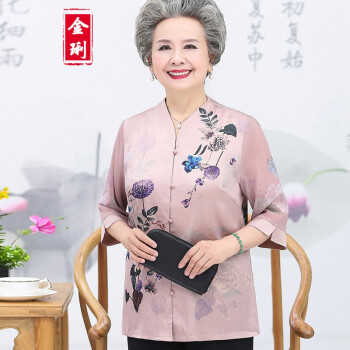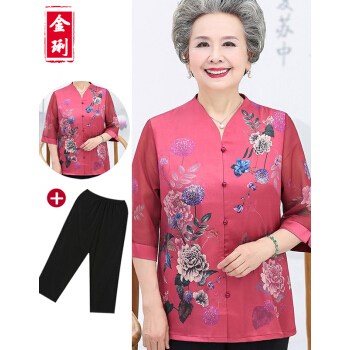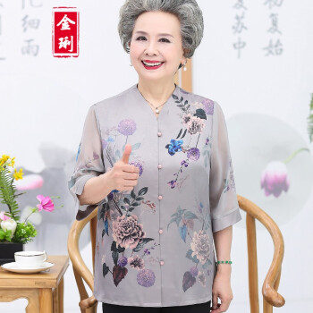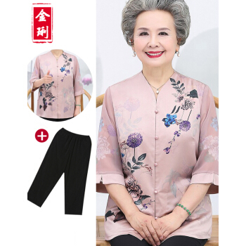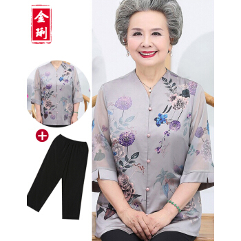 金琍JL中老年女装妈妈装奶奶装夏装妈妈唐装中老年人女套装老人衣服胖老太太短袖冰丝衬衫两件套 灰色 2XL【建议100-110斤】 |