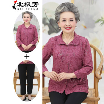 北极芳 中老年女装奶奶装春夏装两件套装翻领衬衫老年人夏季印花九分袖衬衣 102-19A-1 红色套装 2XL【105-120斤】 |