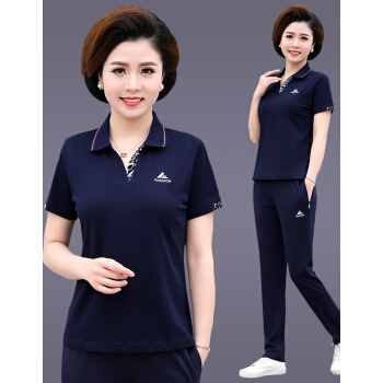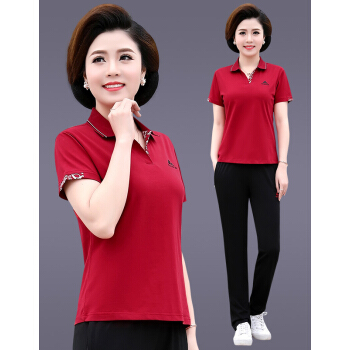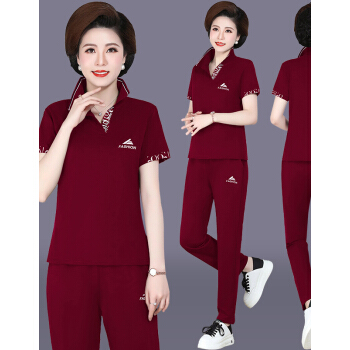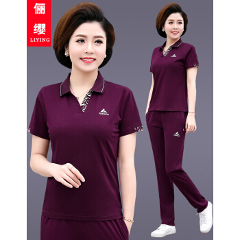 俪缨中老年女装夏装新款4050岁中年运动套装T恤上衣裤子女装休闲宽松大码妈妈装两件套女装 紫红色 L(105-115斤) |