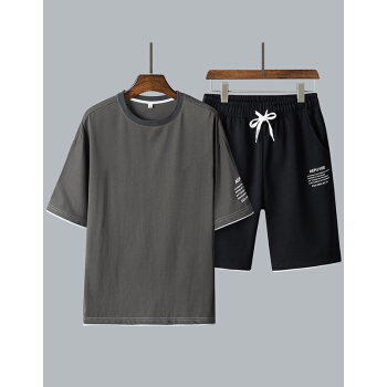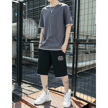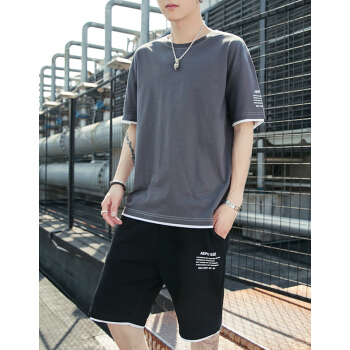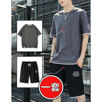 等歌短袖t恤男士t恤短袖夏季薄款圆领潮牌男装丅恤男半袖卫衣运动套装仿棉新款短袖T恤男休闲短裤男两件套 1902深灰 XL |