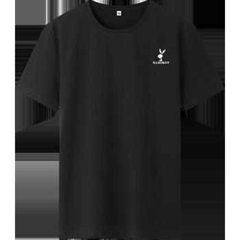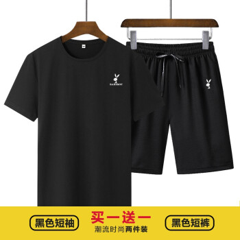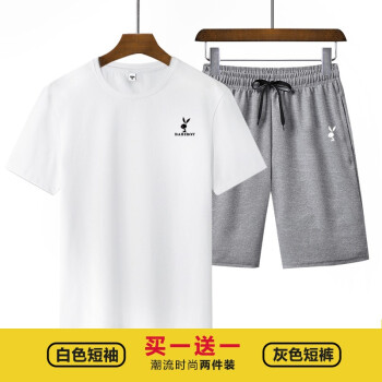 BABIBOY 夏季新款男士运动套装短裤男纯棉T恤男纯色圆领T恤男 白色T恤+黑裤 XL |