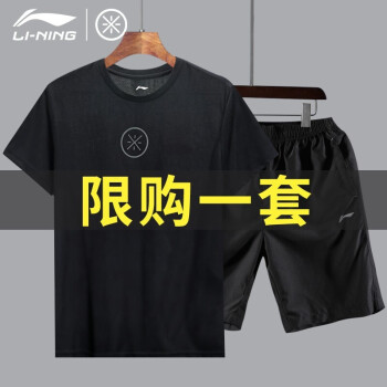 李宁运动套装男士速干短裤男夏季服饰健身服篮球服运动服饰跑步服衣服透气短袖 黑/黑(韦德) XL |