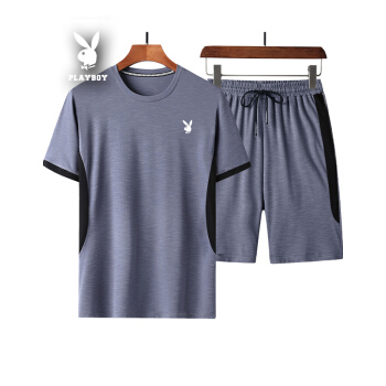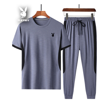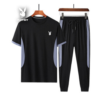 短袖t恤男纯色运动2套装棉棉夏季新款韩版宽松翻领潮流T恤衫大码休闲衣服男装九分裤 黑色422 XL |