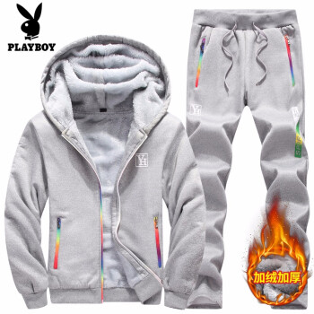 卫衣套装男春秋冬新款时尚潮牌卫衣男装连帽开衫外套加绒加厚保暖套装跑步运动休闲潮流两件套 8818灰色 3XL(建议155斤以下购买) |