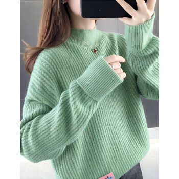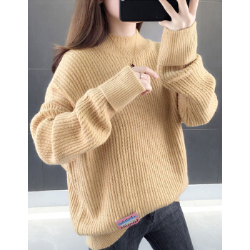 婪澈针织衫女春秋新款大码女装打底衫女韩版宽松百搭圆领毛衣女 黄色 L |