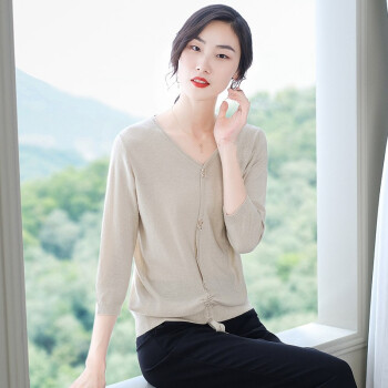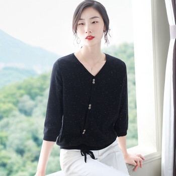 素荨针织衫女V领亮丝上衣秋装新款薄款毛衣宽松七分袖打底衫 砖红色1213 M |