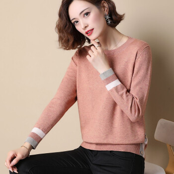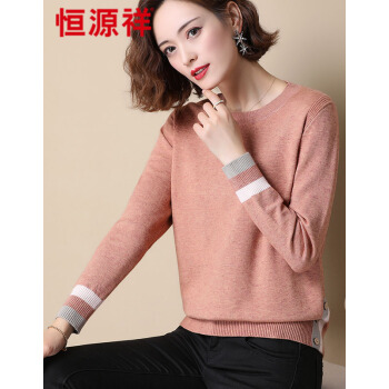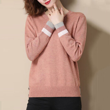 恒源祥针织衫女春秋季新款韩版时尚短款圆领针织衫休闲百搭拼色纽扣宽松减龄女上衣888 肉粉 M |