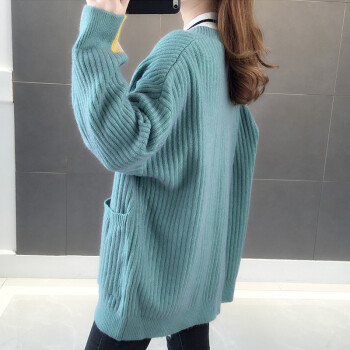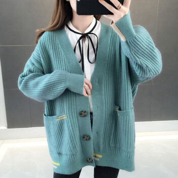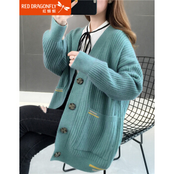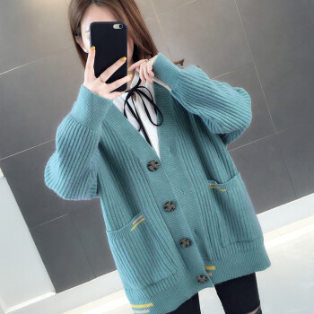 红蜻蜓 针织开衫毛衣女新款春秋韩版百搭宽松慵懒风外套时尚针织外搭上衣 WL738 绿蓝 均码 |