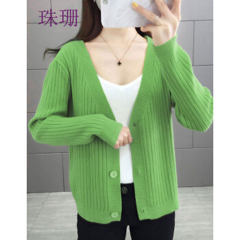 珠珊针织衫女新款春秋外搭毛衣小开衫外套女宽松懒慵风V领女装单排扣短款针织衫上衣 7306-砖红色 XL |