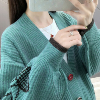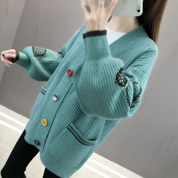 恒源祥针织衫女秋季新品时尚慵懒风外搭开衫女灯笼袖刺绣针织衫女韩版宽松毛衣外套女0215 湖蓝 请拍正确尺码 |