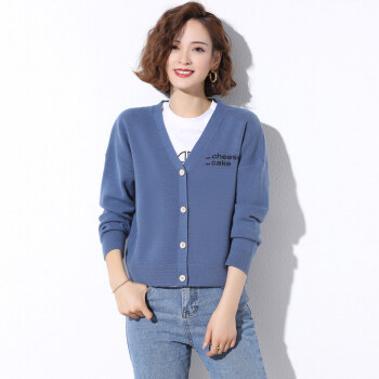 歌米拉 针织衫女开衫薄款春秋装新款秋季洋气女士毛衣外套外搭短款 蓝色 M |