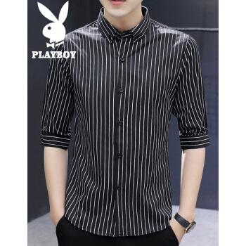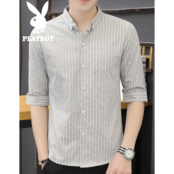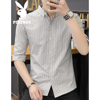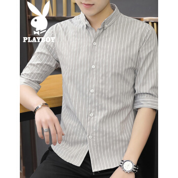短袖衬衫男夏季新品透气韩版条纹衬衣男装青年薄款宽松休闲外套五分袖上衣服 6023灰色 M |