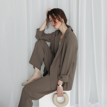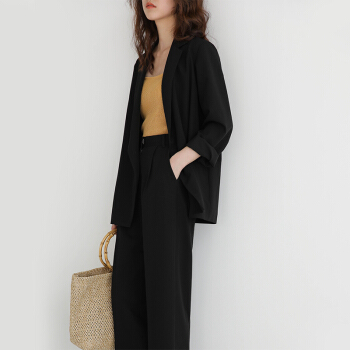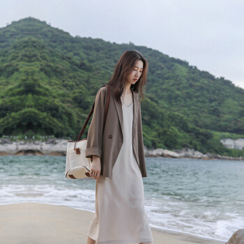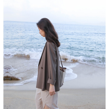 BINXUN 小西装外套女春装韩版英伦风上衣复古气质休闲宽松chic小西服女夏 卡其色 S 西装外套 |