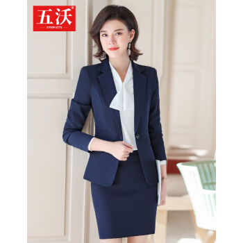 五沃 职业装女装套装小西装女时尚OL气质修身商务正装上班族工作服 黑色西装+西裤 L |