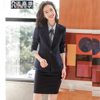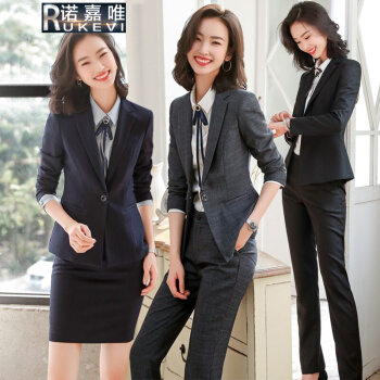 诺嘉唯职业装女装套装暗格纹商务小西装西服女士通勤工作服主持人面试工装G1528 蓝色格西装+裤子 XL |