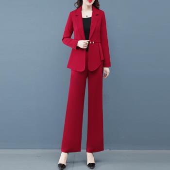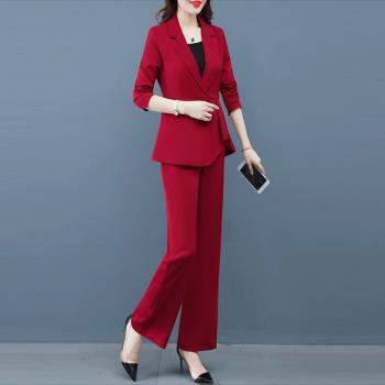 玫姿恋小西装女外套通勤职业装女装套装西服职业装秋季新品女装韩版时尚气质网红女神范两件套202 202酒红色 L |