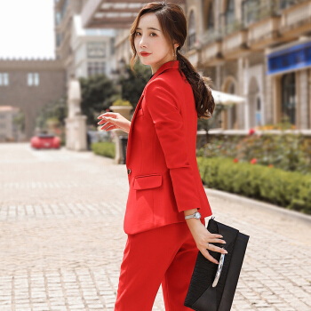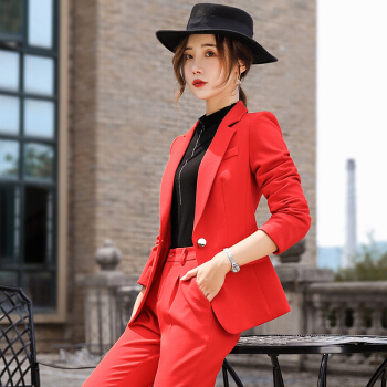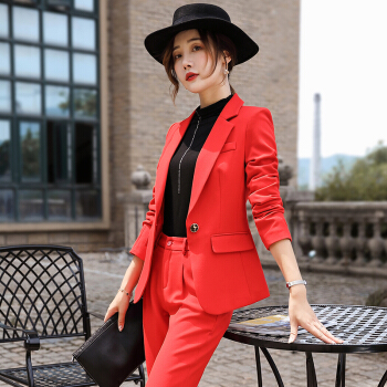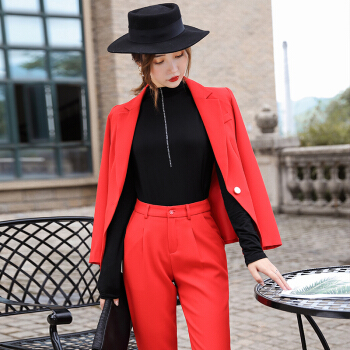 【多色可选】昂柏红色西装女套装大码显瘦休闲秋冬新品OL职业女装气质时尚通勤酒店支持人工作服 红色单件小西装 M |