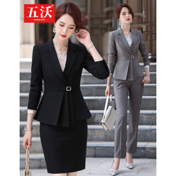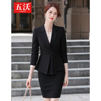 五沃 职业装女装套装小西装女神范总裁商务时尚气质大学生面试修身正装工作服 单件黑色外套 L |