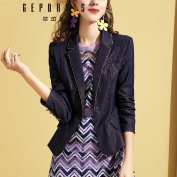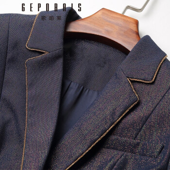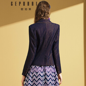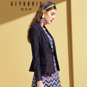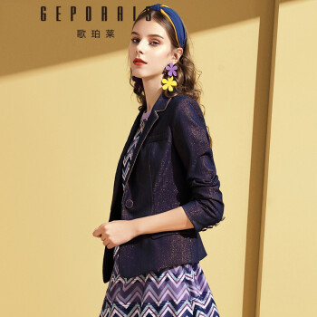 歌珀莱品牌女装时尚休闲西装外套秋季新款复古亮丝西服女上衣 深蓝色 S |