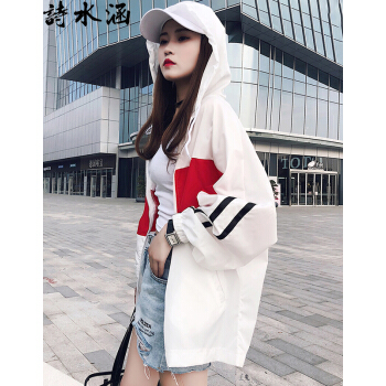 诗水涵 防晒衣女夏季新款韩版中长款防晒服女宽松学生百搭薄款外套女装时尚户外开衫棒球服防晒衫女 红色 XSS |