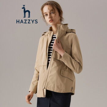 【商场同款】哈吉斯HAZZYS 秋季时尚简约纯色连帽女士长袖外套ASVSU09CU01 米色BI 165/88A 40 |