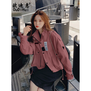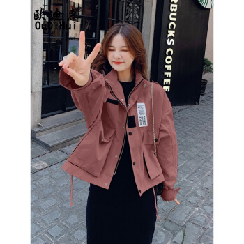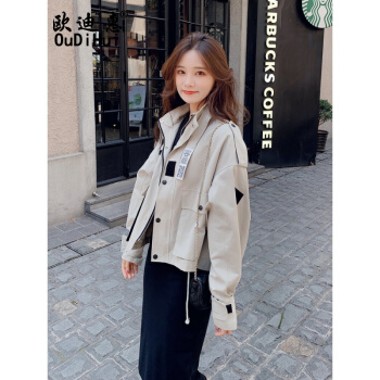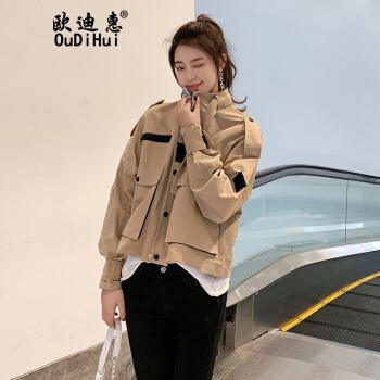 欧迪惠 工装外套女短款新款秋季女装学生韩版bf短外套女宽松时尚百搭洋气流行休闲风衣潮 浅卡其 S |
