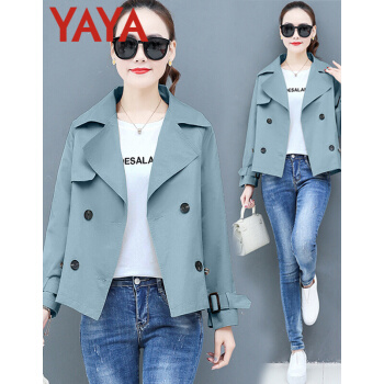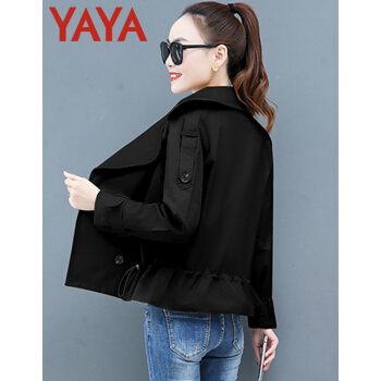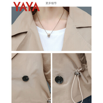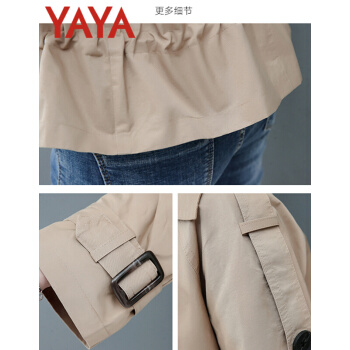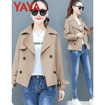 鸭鸭服饰yaya小个子外套女春秋季新款夹克休闲上衣春秋装百搭短款女士风衣 卡其色 L |