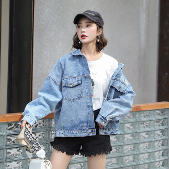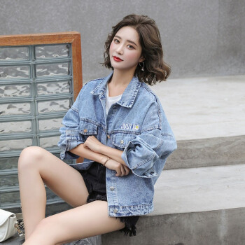 淑蔓婷牛仔外套女春秋新款宽松韩版bf百搭学生复古网红刺绣上衣ins 浅蓝色 M |