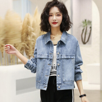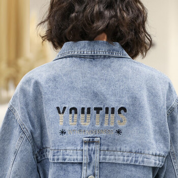 玄衣然 牛仔外套女春秋新款韩版宽松显瘦时尚洋气短款简约英文刺绣上衣潮 图片色 L |