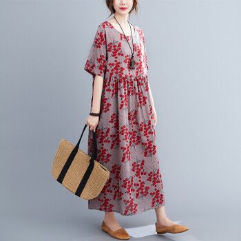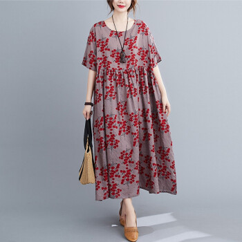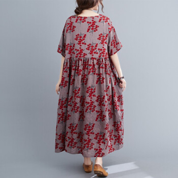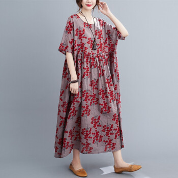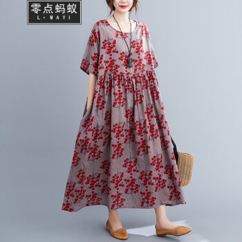 零点蚂蚁200斤大码女装胖mm夏装文艺复古遮肚子宽松印花棉麻连衣裙加肥加大码洋气时尚休闲裙子胖人女装 图片色 均码【130-220斤】 |