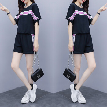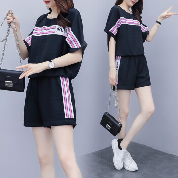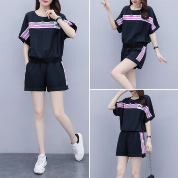 睡妍 大码女装套装女夏夏季新品韩版胖mm宽松显瘦短袖T恤短裤两件套休闲套装女 7319 黑色 XXL(135-155斤) |