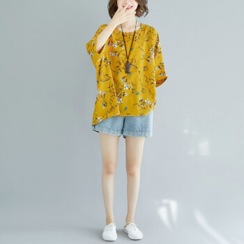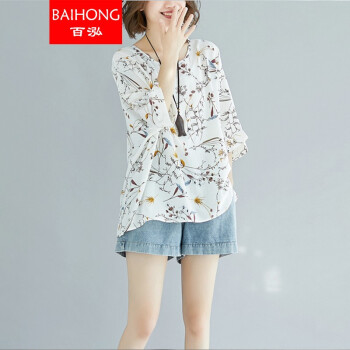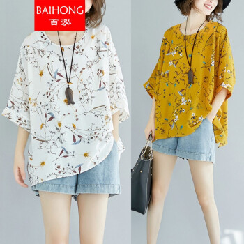 百泓 胖妹妹加肥加大码女装夏新款装200斤韩版上衣宽松显瘦碎花蝙蝠袖雪纺衫潮 白色 大码均码【建议100-220斤】 |