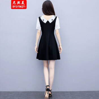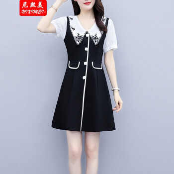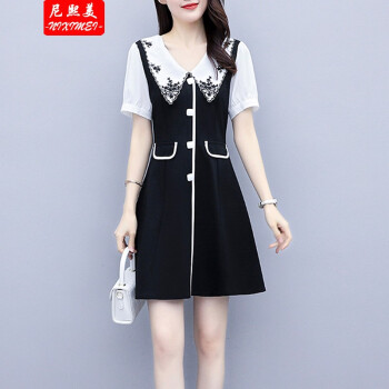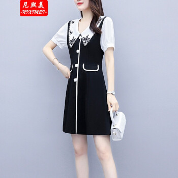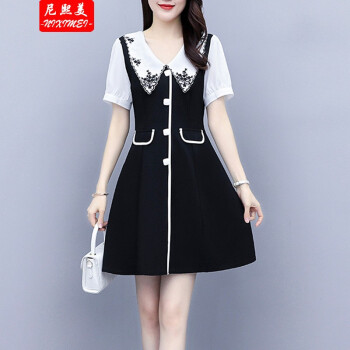 尼熙美 大码女装胖mm夏装新款胖妹妹遮肉宽松显瘦复古收腰遮肚子加肥加大码气质连衣裙 黑色 2XL 建议130-145斤 |