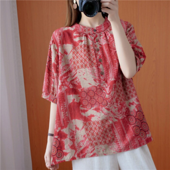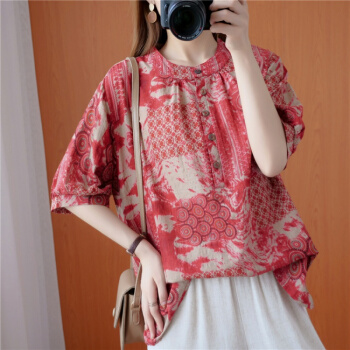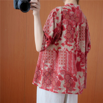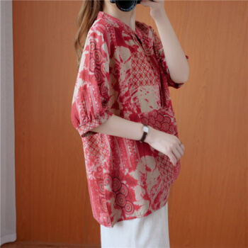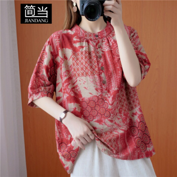 简当夏装新款加肥加大码女装胖妹妹MM涂鸦渲染纽扣短袖胖MM遮肚显瘦衬衫T恤上衣BS1988 图色 大码均码 |