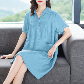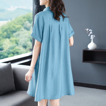 木棉林胖妹妹mm优雅连衣裙加大码女装新款夏装洋气减龄翻领宽松遮肚子中长款裙子女H202586 蓝色 XL建议120-140斤 |