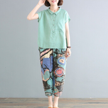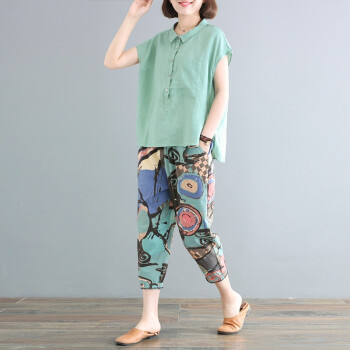 潘歌大码女装夏装新款韩版宽松大码遮肉棉质文艺范休闲套装女两件套P9390 豆沙红 30天质保 请选合适尺码 |