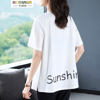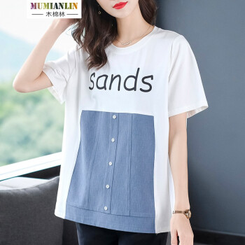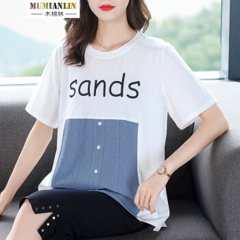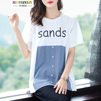 木棉林胖妹妹mm上衣女加大码女装新款夏装200斤遮肚短袖洋气拼接中长款T恤女H202633 白色 2XL建议140-160斤 |